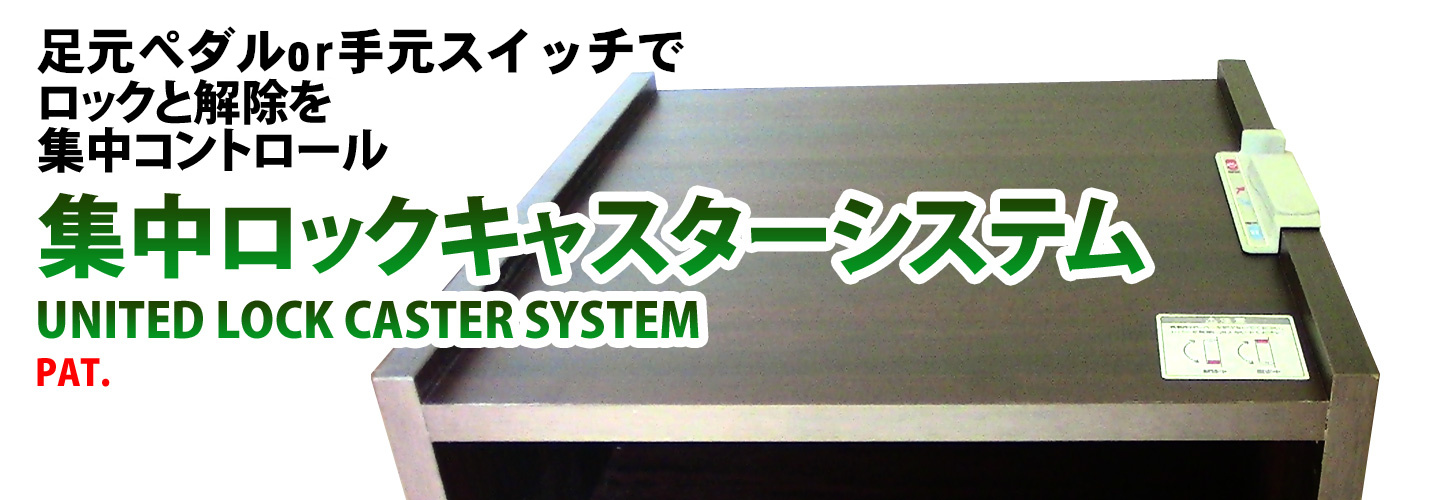 集中ロックキャスターシステムは、足元のペダルor手元のレバースイッチで、一括制御によるキャスターの固定/解除が可能な、連動キャスターシステムです。